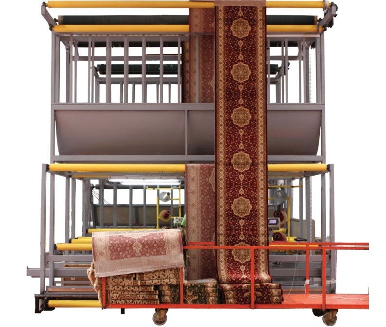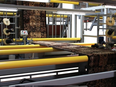 Makina sayesinde 4 - 5 metre enindeki halılar ve ensiz dokunan yolluklar, PLC sistem ile kontrollü olarak overlok edilir.