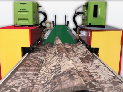 Halının kenarı, eritilen plastik granül hammaddesi ile presli olarak katlanıp yapıştırılır. Ayrıca konveyör yapıştırma makinası ile bağlantılı veya bağlantısız, PLC hız kontrollü olarak çalışır.