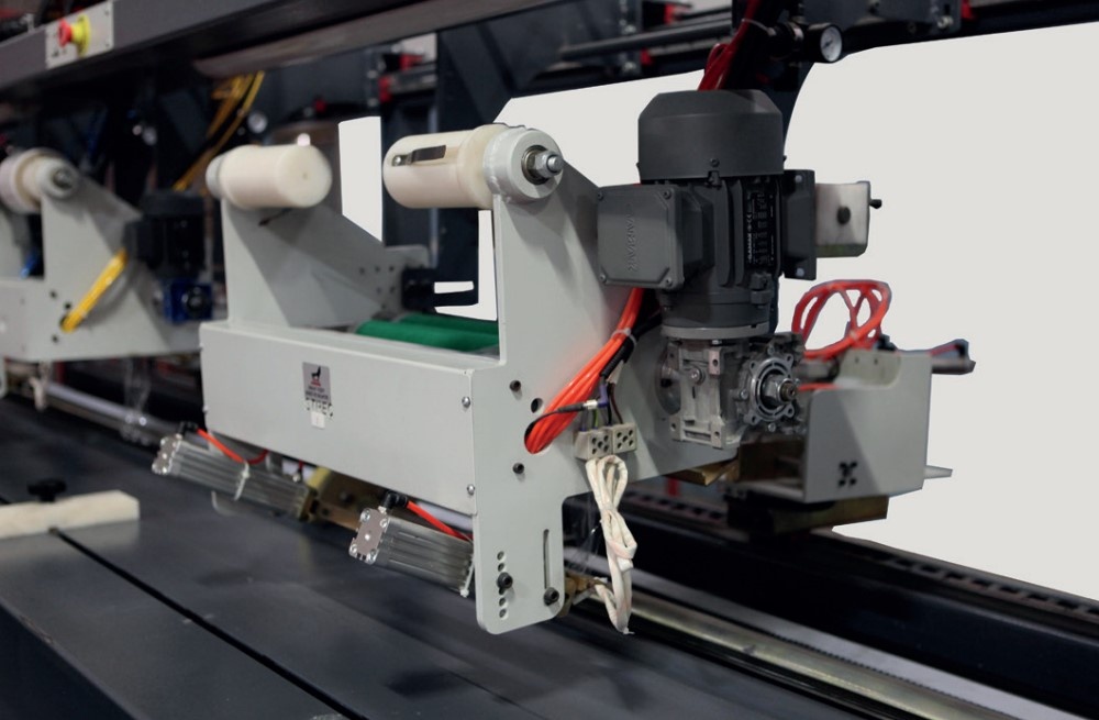 Üretimi tamamlanmış halıların son olarak rulo olarak sarılması pvc veya başka bir ambalaj malzemesi kullanılarak otomatik etiket ekleme ünitesi ile etiket ekleyerek streç saran aynı zamanda ters ve düz büküm yapabilen makinadır.